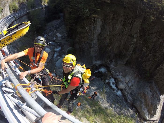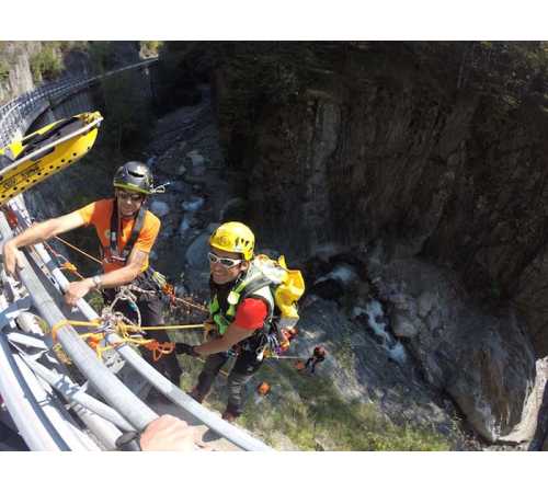 Il giorno successivo, in valle Vigezzo, con l'assistenza di personale medico del CNSAS, il focus si è spostato sulla gestione delle diverse traumatologie e l'utilizzo degli specifici presidi.