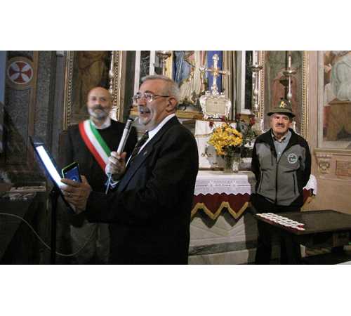 Ha fatto seguito l’intervento di Pier Antonio Ragozza che, dopo aver voluto ricordare l’artigliere alpino Medaglia di Bronzo al Valor Militare Carlo Danda recentemente scomparso e che aveva fornito un apporto storico per la compilazione del libro, ha illustrato i contenuti del lavoro, di come sia nata la pubblicazione, edita dai Gruppi Alpini di Caddo, Crevoladossola e Preglia, con il patrocinio del Comune di Crevoladossola e dell’Associazione Nazionale Combattenti e Reduci di Domodossola.