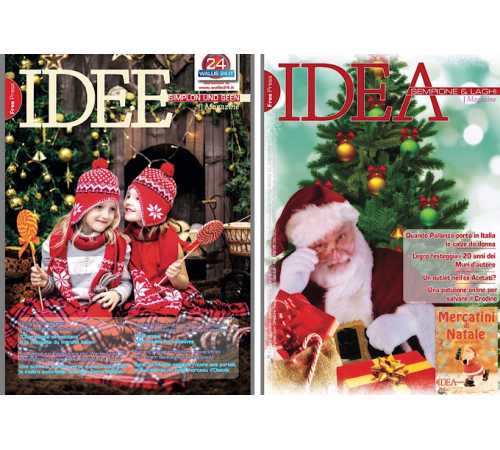 in tre lingue IDEA- IDEE, da oggi in distribuzione gratuita in tutto il territorio in migliaia di copie con incluso lo speciale dedicato ai Mercatini ed alle iniziative per il Natale. Era il dicembre del 2014 quando uscivamo con questa innovativa pubblicazione, che da un lato riporta in italiano le principali notizie del Vco ed Aronese, e dal lato svizzero, in tedesco vallesano e francese, riporta tutte le notizie che pensiamo possano interessare il pubblico d'oltralpe, vero e proprio ambasciatore di questo territorio in Svizzera. Ed i nostri amici vallesani e ticinesi apprezzano sempre di più IDEA - IDEE, così come pure il pubblico italiano. Presto posizioneremo dei distributori anche nel centro di Omegna, che si aggiungeranno a quelli di Domodossola e Verbania. Un ringraziamento deve andare ai nostri collabopratori, sempre pronti a fornirci notizie curiosi ed interessante corredate da bellissime foto, ma anche ai nostri inserzionisti. Molti di loro sono con noi da quattro anni, ed il motivo è presto chiarito: IDEA- IDEE funziona! E' un ottimo veicolo promozionale. Allegato a questo numero, come in più occasioni capita durante l'anno, trovate uno speciale. Per l'occasione si tratta dello speciale deicato ai Mercatini ed agli eventi di Natale del territorio per il mese di dicembre. Come editori, per soddisfare sempre più le esigenze dei nostri clienti, e quelle dei lettori vallesani, abbiamo aperto anche il giornale online, aggiornato quotidianamente con notizie in tedesco, Wallis24.it