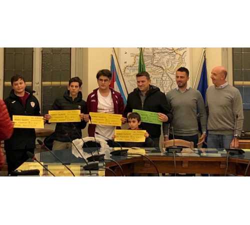 DOMODOSSOLA- 13-12-2018- All'interno del progetto, finanziato da Fondazione Cariplo e Comune di Domodossola, "Domo città dello sport", tredici ragazzi, impegnati attivamente in società sportive, sono stati premiati in Municipio a Domodossola alla presenza del commissario della Fondazione Cariplo Francesca Zanetta e dell’assessore allo Sport Angelo Tandurella oltre che di Marco Longo Dorni. I premi, del valore di 200 euro l'uno, sono stati assegnati a Gioele Mafrica, Andrea Bonzani Tidu, Simone Cauterio e Thomas Trotta della Juve Domo, Chiara Pianzola e Alessandro Ambrogi del Tennis club Monterosa, a Thomas Floriani (Caddese) e Veronica Bona (Sport project), a Rossella Bellomi e Federico Spinozzi del Domo Nuoto, a Chiara Rolandi per la pallanuoto, a Teresa Bianchetti per il nuoto sincronizzato e infine a Camilla Comazzi atleta di salto con gli sci.