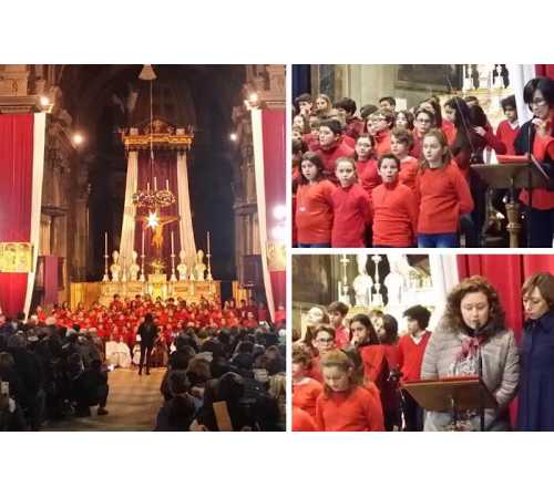L'evento natalizio delle scuole rosminiane di Domodossola è una tradizione che si rinnova: dopo la sacra rappresentazione degli anni scorsi questa volta un vero e proprio concerto di Natale con i giovani cantori di rosso vestiti, diretti dall'insegnante di canto, la professoressa Prina.