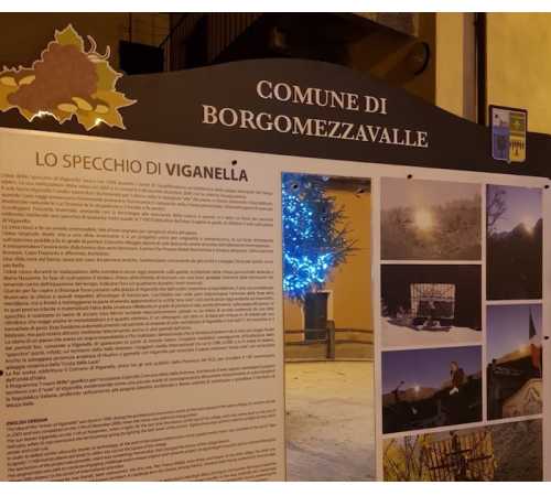 BORGOMEZZAVALLE - 20-12-2018 - A Borgomezzavalle sono state installate alcune bacheche turistiche. Una racconta la storia dello Specchio di Viganella, che ha fatto conoscere la località della Valle Antrona in tutto il mondo, un'altra illustra i luoghi più importanti del Comune e un'altra ancora invita gli automobilisti a rallentare, perchè in questo paese i bambini giocano ancora per la strada. Le bacheche fanno parte del programma di sviluppo turistico dell'amministrazione guidata da Alberto Preioni.