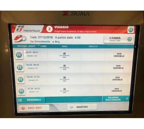 più vendere i biglietti per la Svizzera alla stazione di Domodossola. Dall’entrata in vigore del nuovo orario, l’8 dicembre, per un problema informatico i biglietti per la Svizzera non sono più vendibili né alla biglietteria, né all’ufficio assistenza, né ai dispositivi self service. Un disservizio oltre che un mancato introito che va avanti da parecchi settimane. Un cartello davanti alla biglietteria informa, in tre lingue, del problema, che però non è comprensibile soprattutto per la clientela straniera.