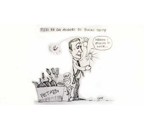architetto di professione, ma con la passione e il talento per il disegno, ci racconta l'augurio di fine anno, con raccomandazione sui fuochi d'artificio, fatto dal sindaco Lucio Pizzi ai domesi.