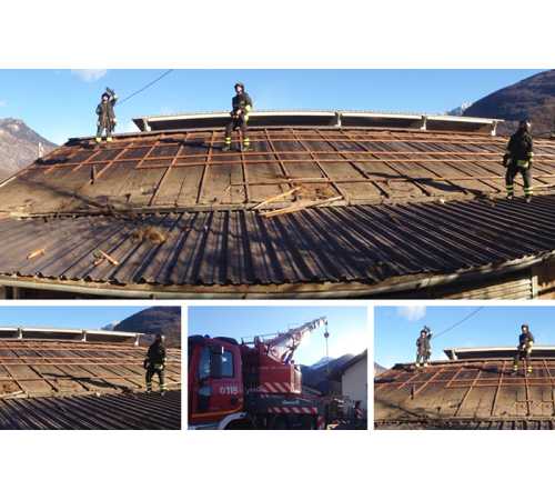 dei Vigili del fuoco domesi presso la stalla di Masera a cui è volato via il tetto in lamiera, la superficie volata via è di circa 300 metri quadri che in seguito ad una tromba d'aria si è divelta e rovesciata sul tetto dell'edificio adiacente. E' intervenuta da Verbania una gru che è servita per rimuovere le lamiere pericolanti per mettere in sicurezza il tetto, che verrà ripristinato in seguito. I danni solo solo alla struttura, nessun animale è stato ferito.