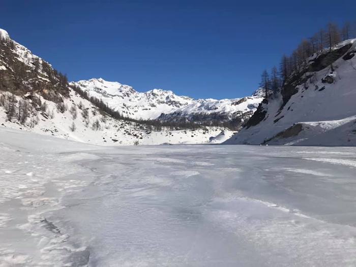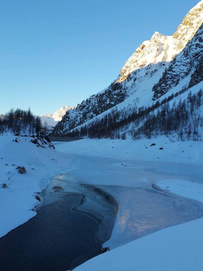 BACENO - 02-12-2019 - Il lago gelato di Codelago s'è ripreso il suo spazio, per l'ammirazione dei tanti escursionisti che in questi giorni di festa si sono recati al Devero. Ma dall'ente di gestione delle Aree Protette dell'Ossola giunge un avviso importante, poiché lo strato di ghiaccio è sottile in molti punti, una condizione anomala per la stagione. "La traversata del lago gelato di Codelago all’alpe Devero è un itinerario molto frequentato che attira ogni inverno escursionisti e ciaspolatori. Quest’anno il lago, essendo in corso interventi di manutenzione delle dighe, è stato svuotato ed è tornato alle dimensioni originarie di inizio Novecento, prima degli interventi di utilizzo idroelettrico. Una condizione straordinaria che permette di vedere il lago come era un secolo fa. Le condizioni ambientali tuttavia sconsigliano fermamente l’attraversamento del lago in quanto le forti escursioni termiche hanno impedito il formarsi di un consistente strato di ghiaccio".