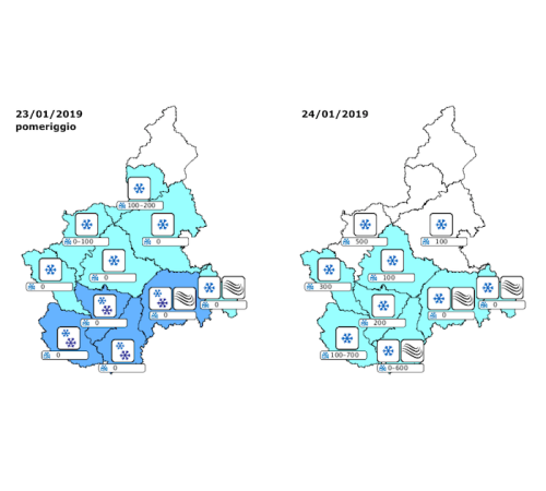VCO - 23-01-2019 - Il Verbano Cusio Ossola resta ai margini della perturbazione che in queste ore interessa gran parte dell'Italia e del Piemonte. Deboli nevicate sono segnalate dall'Arpa sui rilievi alpini occidentali della Regione fino alle zone pianeggianti adiacenti, ma a nord del Po i fenomeni sono del tutto assenti o sporadici, di intensità molto debole (vedi foto). Domani situazione fotocopia, anche se a partire dalla serata in Ossola potrebbe arrivare il vento. Insomma, per la neve bisogna aspettare ancora.