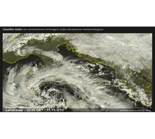 VCO- 26-01-2019- Il ciclone mediterraneo Klaus da spettacolo nel Mediterraneo,ce lo segnala Luca sergio da meteolivevco, che spiega. “E' un vortice depressionario di rara bellezza. Dalle immagini satellitari è ben visibile anche la neve in pianura al nord ovest.