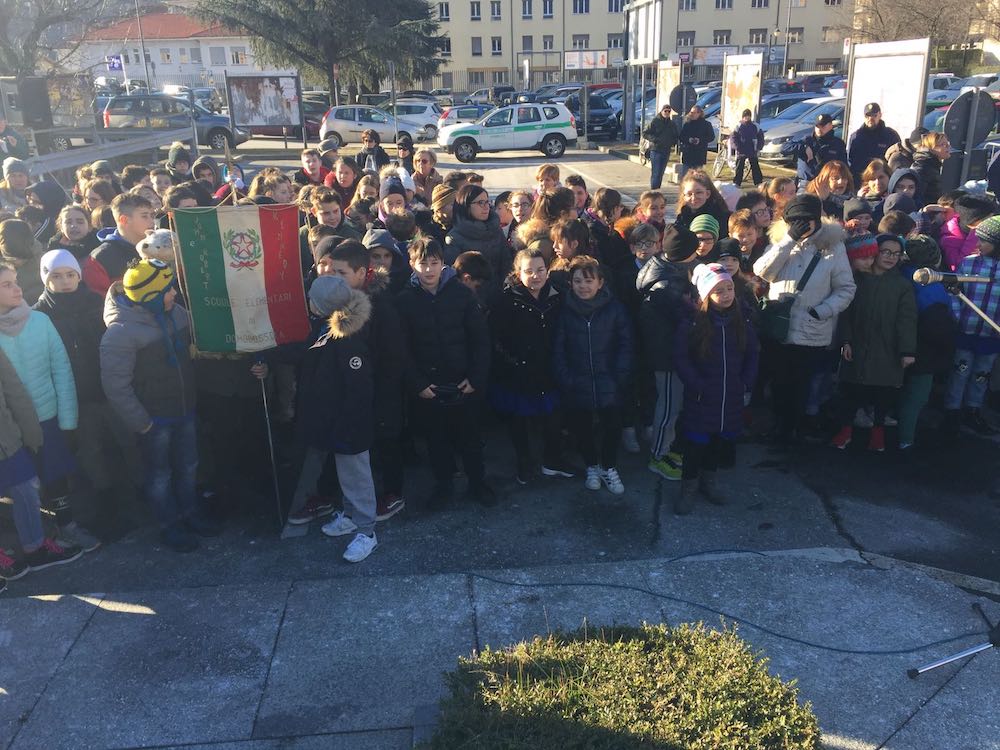 a Domo, per la Giornata della Memoria che il Comune ha deciso di celebrare questa mattina per aprire alla partecipazione delle scuole. Di seguito il testo dello storico Pierantonio Ragozza, cui è stata affidata l'orazione ufficiale.
