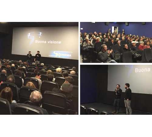 CREVOLADOSSOLA - 08-02-2019 - Più di un ottantina di persone hanno partecipato alla proiezione del film "Si muore tutti democristiani" nella sala Cistella del Cinema Paradiso presso l'Ipercoop di Crevoladossola. Il film, prodotto da Rai Cinema e distribuito da 01, è nelle sale da maggio 2018 ma è la prima volta che approda al cinema nel Vco. Insieme agli organizzatori dell'iniziativa, i ragazzi dell'Assciazione Ossola porta d'Europa, erano presenti Davide e Andrea del cast del "Terzo Segreto di Satira". Per loro non era la prima volta in Ossola, nell'estate 2017 avevano partecipato insieme al "Milanese Imbruttito" alla Festa della Lucciola per uno spettacolo live. Al termine del film gli autori hanno raccontato una serie di aneddoti sul film e risposto alle domande degli interessati spettatori.