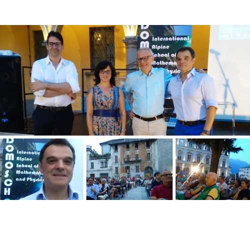 DOMODOSSOLA- 21-07-2019- In tanti venerdì sera in piazza Rovereto hanno partecipato all'incontro "Colloqui sull' Universo " organizzato da Ars. Uni.Vco nell'ambito della seconda edizione di Domoschool, International Alpine School of Mathematics and Physics. Special guest della serata lo scienziato ossolano dell'ESA ( Agenzia Spaziale Europea) Andrea Accomazzo che insieme al fisico milanese Marco Giammarchi, docente di fisica nucleare a Milano, ha portato la scienza fuori dalle aule scolastiche, intervenendo sul tema del futuro dell'esplorazione spaziale e sulla cosmologia. La serata, moderata dalla giornalista Cinzia Attinà, ha visto i saluti iniziali del vice sindaco Angelo Tandurella e la presenza di Sergio Cacciatori, scienziato ossolano curatore di Domoschool. Accomazzo a proposito della missione spaziale "Beyond" in corso adesso, spiega: " trovo molto significativo che Luca ( Parmitano) sia partito verso la stazione spaziale, nella ricorrenza dei cinquant'anni dallo sbarco sulla luna, che rimane la pietra miliare dell'esplorazione e dell'ardimento umano. Come ESA ci stiamo espandendo anche nell' esplorazione robotica. In particolare stiamo lavorando coi colleghi americani sulla nuova stazione spaziale: la costruiremo intorno alla luna e permetterà agli astronauti di andare sulla luna e da lì forse un giorno di assemblare l'astronave che ci porterà su Marte". E a proposito dei terrapiattisti, Accomazzo ha detto che dovrebbero essere i primi turisti spaziali e che dovremmo essere tutti contenti di far vedere loro come sia bella la nostra Terra così rotonda.
