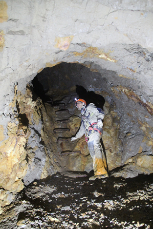 All'interno abbiamo trovato alcune scritte realizzate cent'anni prima dai minatori con le lampade a carburo, indicanti date e iniziali di chi vi lavorò, oltre a reperti come strumenti di lavoro dei minatori e tramogge di scarico del minerale aurifero, in perfetto stato di conservazione. Una di queste scritte riporta 1909 FP.