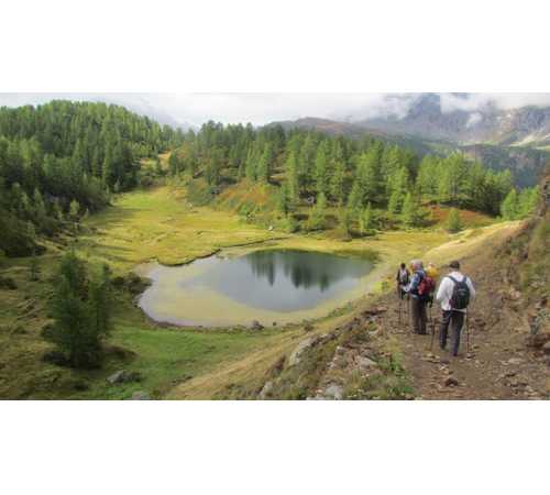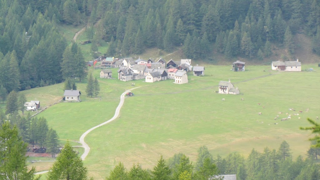 Nuvole e piccoli sprazzi di sole adesso si alternano. Proseguendo incontriamo una leggera salita ed un’altrettanto leggera discesa, costeggiamo il primo laghetto di Sangiatto, quasi asciutto, e raggiungiamo l’alpe che produce, insieme ad altre sei, il famoso Bettelmatt, 2010. Costeggiamo un altro dei laghetti, più che altro un grande stagno, e seguiamo la pista trattorabile che scende a Crampiolo. L’orario ci consente di scendere a valle per arrivare in tempo alla buona pappa di Croveo. Chiudiamo l’anello a Corte d’Ardui e, rapidamente, raggiungiamo Devero. Mirella ci tratta bene, come sempre.