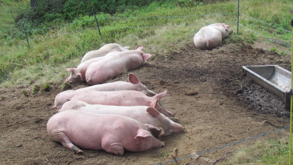 Un bel gruppo di maiali sta trascorrendo qui, oziosamente, l’estate e i primi giorni d’autunno. Probabilmente il prossimo anno riceveranno il cambio. Poco dopo attraversiamo Crampiolo, 1767. Teniamo la destra e saliamo in breve alla dighetta di Codelago, 1856. Ci teniamo sulla sponda sud orientale del lago, percorrendo la pista pianeggiante che, due settimane fa, richiedeva gli stivali da pesca per evitare contatti troppo ravvicinati con le bulacche che la riempivano. Una recinzione elettrificata parallela alla strada, anziché trasversale, forse avrebbe risparmiato un sentiero della GTA senza creare troppo disturbo alle ben amate vacche, ora discese a fertilizzare più a valle. Finalmente possiamo chiudere gli ombrelli. Al primo bivio teniamo la destra e saliamo verso l’Alpe della Valle, 2048. Il ponticello che attraversa il rio omonimo è stato rimesso al suo posto dopo la buzza estiva. Questo è l’angolo di paradiso dove il mio amico voleva riposare. Prima del rio prendiamo il sentiero che sale a destra per qualche decina di metri e poi attraversa, pianeggiante, le splendide radure e le torbiere del Grande Est. Il Monte Cobernas ci sovrasta alla nostra sinistra. All’Alpe Corte Cobernas, 2007, dopo un’altra mezz’ora, facciamo colazione.