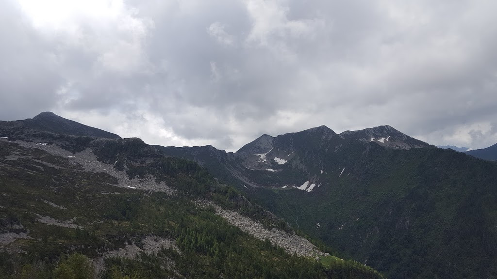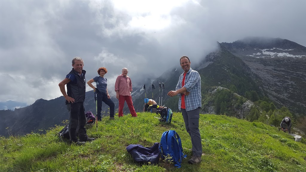 Con tutta calma poi, visto che il rischio di pioggia è svanito, riprendiamo la discesa lungo il sentiero che parte in prossimità del rifugio. Prima scendiamo nel prato, in fondo al quale s’incontra un tratto di sentiero sassoso ed estremamente scivoloso che mette a dura prova i riflessi del dopopranzo. Entriamo quindi nel bosco fino a tornare su un breve tratto della strada. L’ultimo pezzo di sentiero conduce al parcheggio di Faievo. Ripensando alla favolosa raclette che nel 2017 aveva concluso l’escursione alla Punta I Pisoni, ci avviamo mestamente verso casa,