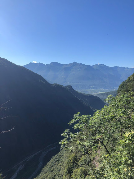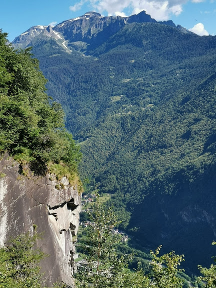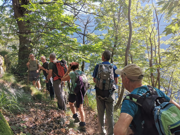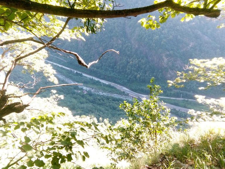 Ci ritroviamo all’alba al Gufo's a ricevere, proveniente da Verbania, l'unica donna coraggiosa della spedizione odierna. Siamo in otto e c’è pure l’Alpinista Ignoto, forse l’unico, oltre al padrone di casa, ad aver già percorso, almeno in parte, i sentieri di oggi. Diretti verso Varzo lungo la vecchia statale, superiamo la breve galleria dopo San Giovanni e parcheggiamo sulla destra in prossimità del ponte romanico, chiamato Ponte Nuovo, a quota 390. Attraversiamo il Diveria e imbocchiamo sulla destra, anche orografica del torrente, un sentiero abbastanza sporco e a tratti scivoloso che, con qualche saliscendi, costeggia il corso d’acqua per circa mezz’ora. Incontriamo, sempre all’altezza del Diveria, la strada di una cava dismessa che seguiamo fino al termine. Siamo a quota 700 circa. Un camoscio ci sta venendo incontro inavvertitamente e, alla vista delle nostre anziane facce più o meno belle, schizza nella vegetazione più rapido di Usain Bolt. Dopo una breve sosta imbocchiamo un bel sentiero, ben segnato e inizialmente molto ripido, che ci porta all’Alpe Algnime, Gnimm per gli amici, 900. E’ il primo bellissimo balcone panoramico di questo percorso. Diei e Cistella dominano la scena.