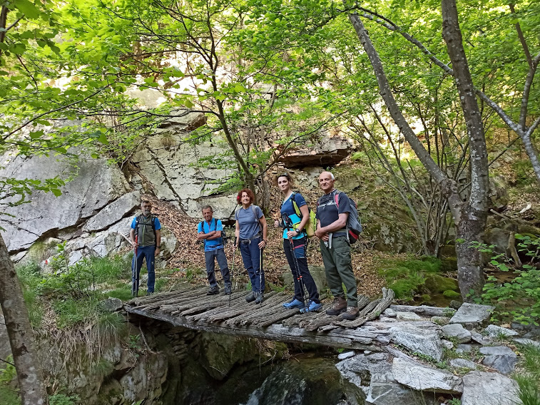 Lungo scorciatoie note solo alle guide odierne saliamo in auto a Premeno, Pian di Sole e parcheggiamo poco prima di Manegra, a quota 800 circa. Attraversiamo la strada ed entriamo nel bosco, diretti a occidente. Inizialmente in discesa, recuperiamo subito il sentiero pianeggiante che, con brevi saliscendi e passando per l’Alpe Erbia, 754, ci porta ad Aurano, 683, in poco più di un’ora. Il paese, come gli altri qui in zona, è più verticale che orizzontale. Scendiamo al Circolo per un buon caffè prima di iniziare la parte “faticosa” della giornata. Risaliamo nella parte alta del paese e proseguiamo sulla strada asfaltata in direzione nord est.
