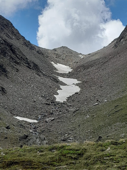 FORMAZZA- 21-08-2022-- I Corni di Nefelgiù, Centrale, Occidentale ed Orientale si trovano al vertice di un vallone parallelo e a oriente di quello principale che sale al Passo omonimo. Lo si percorre in direzione sud partendo dal lago di Morasco. La parte finale, su pietraie e nevai residui, fa preferire la salita con le pelli di foca perché questi pendii consentono una splendida discesa con gli sci. D’inverno ci eravamo già stati qualche volta, d’estate mai, se non sul tradizionale percorso del Passo di Nefelgiù.