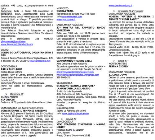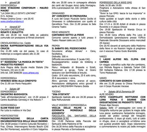 DOMODOSSOLA- 06-04-2017- Tantissimi gli eventi organizzati