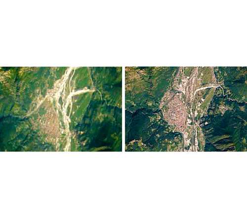 dal 1984 ad oggi? Ecco sul sito meteolivevco la comparazione di due foto fatte dal satellite (ci sono di tre città del Vco ndr.) in cui si vede che Domodossola si è allargata maggiormente verso il torrente Bogna e il fiume Toce, esattamente quello che non si sarebbe dovuto fare. Si nota benissimo come nei primi anno ’80 i letti dei fiumi erano più larghi e con una maggior possibilità di disperdere l’energia delle piene".