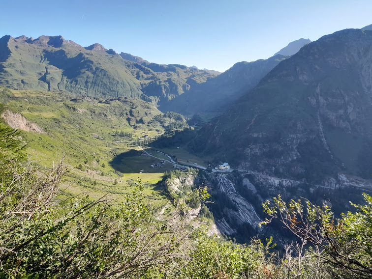 Passiamo dall’Alpe Nefelgiù, 2048, da Furculti e di qui, lungo un ripido sentierino, arriviamo sulla strada che sale a Riale in corrispondenza dell’albergo Pernice Bianca e dell’Alpe Stafel, 1739. L’ultimo tratto d’asfalto ci porta alle auto dopo due ore e un quarto dal Passo di Nefelgiù. E le badanti, nonostante siano sempre in credito nei nostri confronti, ci offrono pure da bere.