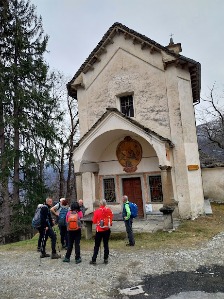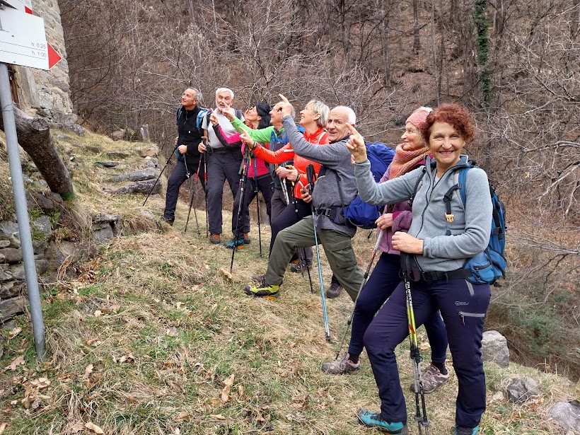 BOGNANCO- 25-02-2024-- C’è un po’ di neve fresca sopra i 1300 metri, sufficiente per rompere le scatole a chi vuole solo camminare, insufficiente per chi vuole gustarsi belle escursioni con le ciaspole, se non addirittura salite con pelli di foca e discese almeno accettabili. Per questo restiamo a basse quote e raggiungiamo un buon dislivello positivo grazie a su e giù con un po’ d’avventura nella bassa Val Bognanco.