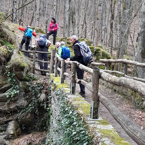Qui teniamo la sinistra e raggiungiamo in breve Ca’ Monsignore, 714, dove ci rifocilliamo dopo un’ora e mezza di cammino. Prosegue il saliscendi che caratterizzerà la gita di oggi. E’ l’unico modo per superare un dislivello positivo importante senza alzarsi troppo verso la neve. Proseguiamo in direzione di Bognanco Fonti con una rapida discesa ad attraversare il Rio Rasiga su un altro bellissimo ponte romanico, a quota 650. Il rio è molto più povero d’acqua rispetto al Dagliano, probabilmente grazie alla gestione “diversa” delle relative centraline idroelettriche.