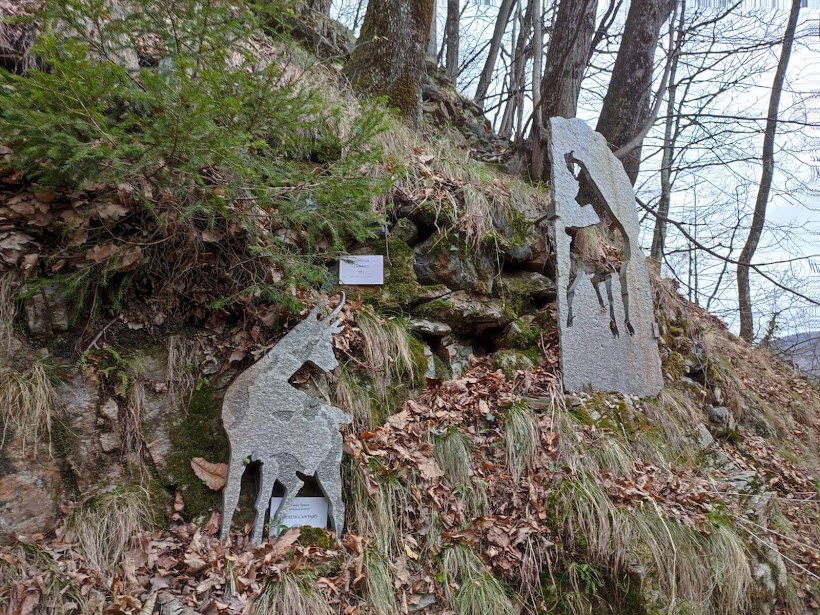 Lungo quel che resta della strada scendiamo a quota 615 all’ingresso di Bognanco Fonti e, lungo la provinciale, risaliamo verso le Terme e al bar del signor Mella per un caffè-aperitivo (mezz’ora da Ca’ Monsignore). Attraversiamo il paese passando vicino alla chiesa e torniamo sulla provinciale all’ex albergo Croce Bianca. Qui imbocchiamo il bellissimo Sentiero del Paese Incantato che ci porta a Boco, 890. E’ tutto un susseguirsi di piccole opere d’arte popolare che rendono magica l’atmosfera del paese e del suo accesso. Proseguiamo con passo da turisti fino a Bacinasco, San Lorenzo e Graniga, 1090 (un’ora e un quarto dalla pausa caffè).