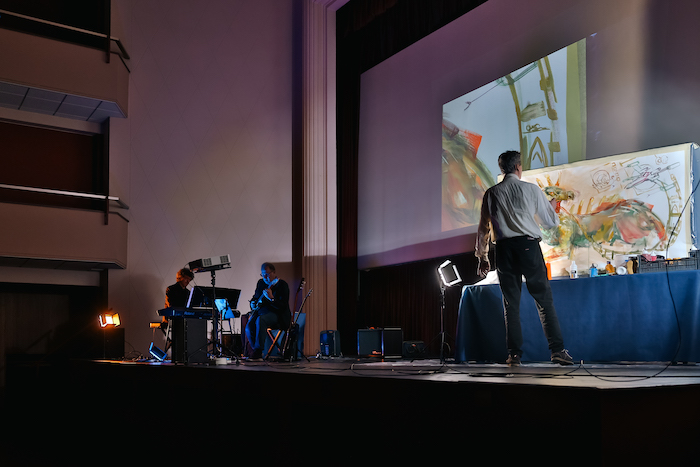 Una platea attenta e partecipe ha applaudito per oltre un’ora una performance dal vivo intensa e raffinata, che ha celebrato la contaminazione tra le arti in un contesto suggestivo come quello del rinnovato Cinema Corso. A fine serata, Paolo Zanghieri, tra i promotori del rilancio della struttura, ha ricordato il progetto “PERCORSO”, che mira a fare del cinema un polo culturale multifunzionale aperto a musica, teatro e progetti come Malescorto.