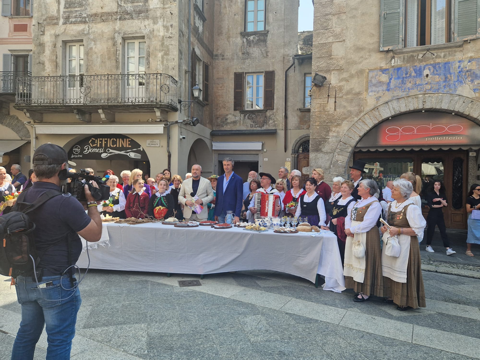 DOMODOSSOLA - 11-6-2025 -- Domodossola è sbarcata questa mattina sulla rete ammiraglia Rai, nella popolare trasmissione “Uno Mattina” condotta in studio da Alessandro Greco e Carolina Rey. L’inviato Rai Massimo Tosi ha aperto il primo collegamento da Piazza Mercato accompagnato dalle donne in costume del Gruppo Folk e dagli studenti dell’Università della terza età, cantando tutti insieme la canzone della D come Domodossola. Nel secondo collegamento, nel quartiere Motta, lo storico Enrico Rizzi ha spiegato la storia del borgo medievale. La troupe e gli accompagnatori sono saliti fino al Sacro Monte Calvario di Domodossola, dove erano attesi da Antonio Pagani, consigliere regionale dell’Ente Parchi Sacri Monti. Infine, l’ultima diretta è stata girata nuovamente in Piazza Mercato, per un aperitivo con i prodotti tipici del territorio. Qui Alessandro Prina ha parlato in veste di docente dell’istituto agrario Fobelli di Crodo – che sta riscoprendo tutte le nostre eccellenze – e di componente della Condotta Slow Food Valle Ossola. «Una bella occasione per farci conoscere in tutta Italia» commenta Vanda Cecchetti, presidente della Pro Loco di Domodossola. L’unica nota stonata, i camioncini del mercato, presenti nel salotto cittadino anche nel giorno in cui la piazza era in diretta nazionale!