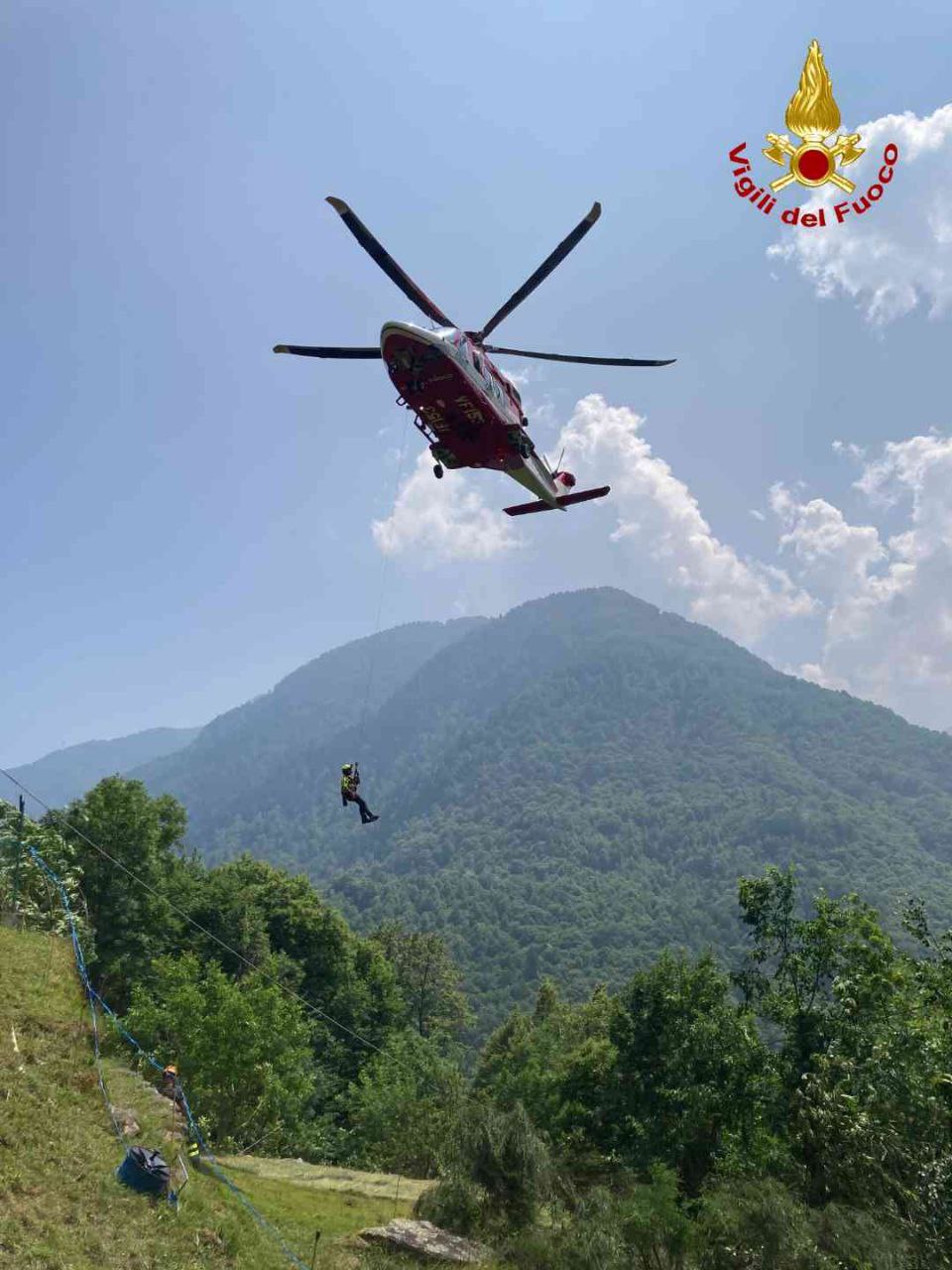 Le squadre dei distaccamenti di Domodossola e Macugnaga hanno raggiunto il luogo impervio dove si trovava il vitello, avviando le operazioni di soccorso in coordinamento con il servizio veterinario dell’ASL. Dopo la sedazione dell’animale da parte del veterinario, il recupero è stato effettuato con l’ausilio dell’elicottero del Reparto Volo dei Vigili del Fuoco di Malpensa.