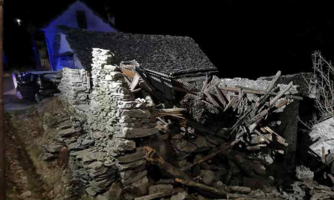 CEPPO MORELLI- 28-12-2025-- Nella notte I Vigili del Fuoco del Verbano-Cusio-Ossola sono intervenuti nel Comune di Ceppo Morelli per il crollo di una abitazione.
