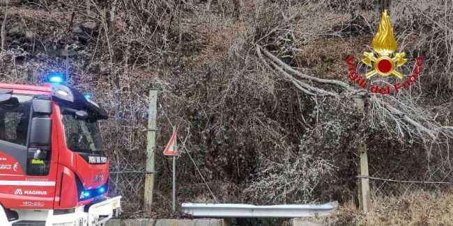 ANZASCA- 25-01-2026-- Nel pomeriggio di domenica I Vigili del Fuoco del Verbano-Cusio-Ossola sono intervenuti in Comune di Bannio Anzino per una pianta caduta sulla sede stradale in località Pontegrande.