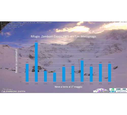 provocano le nevicate a maggio? Sembra di no, almeno in questo decennio, come spiega Luca Sergio sul sito meteolivevco.it: "La neve a terra al 1° di maggio, dal 2008 al 2017 rilevati al rifugio Zamboni dalla stazione meteorologica Arpa Piemonte SMA negli ultimi dieci anni ci danno spunti interessanti, per esempio nel 2009 c’erano ben 4 metri e 22 centimetri".