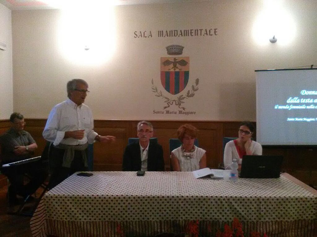 " Donna dalla testa ai piedi. Il mondo femminile nella Cultura Vigezzina" è il titolo della mostra inaugurata venerdì sera 7 luglio al Centro Culturale Vecchio Municipio. Una conferenza, intervallata dalle armonie suonate da Roberto Bassa e condotta dal sindaco di Santa Maria Maggiore Claudio Cottini, con gli interventi di Maurizio De Paoli, ( presidente Fondazione Comunitaria VCO, ente che ha sostenuto l'evento), Monica Mattei ( curatrice dell'esposizione ) e Paola Rovelli ( tesista che ha illustrato la propria tesi di laurea dedicata alla storia del costume Vigezzino) ha preceduto la visita in anteprima alla mostra allestita nello spazio museale al piano superiore del Vecchio Municipio.