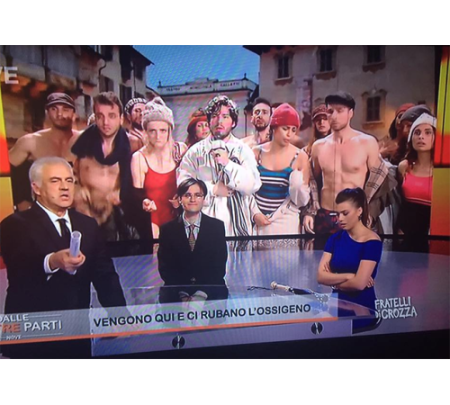 DOMODOSSOLA-11-07-2017- I telespettatori di “Fratelli di Crozza” , ieri sera lunedì 10 luglio hanno potuto riconoscere alle spalle del noto comico la piazza del Mercato di Domodossola, sullo sfondo di una parodia dedicata a Maurizio Belpietro. Non è la prima volta che succede, il 4 aprile di quest'anno il comico aveva già utilizzato come sfondo piazza Rovereto sempre a Domodossola. Ringraziamo i nostri lettori per la segnalazione.