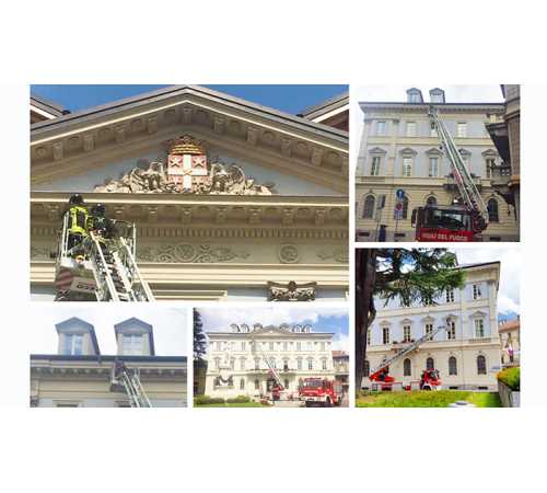 fuoco domesi con l'autoscala nel primo pomeriggio di mercoledì per alcuni calcinacci caduti dai cornicioni del comune di Domodossola.