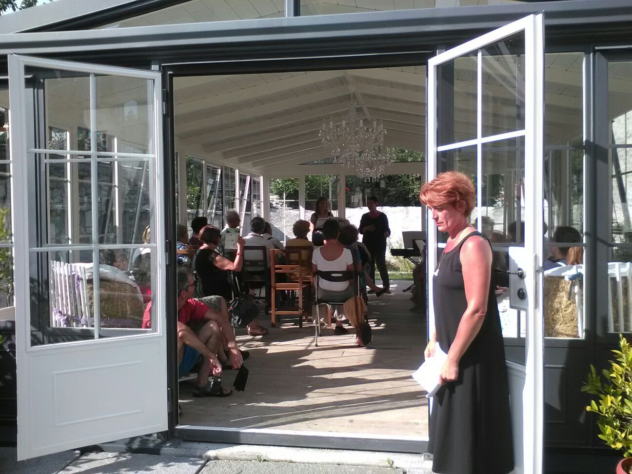 che offre l'estate di Santa Maria Maggiore, nel pomeriggio di giovedì scorso si è deciso di ricordare la figura di Dorothy Parker, pungente e caustica intellettuale della New York degli anni venti e trenta del Novecento, nonché giornalista di testate quali " Vogue" , " Vanity Fair" e " New Yorker". A lei era dedicato l'elegante concerto alla Casa del Profumo del comune vigezzino. Protagoniste la voce del soprano Myriam Mel accompagnata dai brani suonati al pianoforte da Renata Sacchi e le letture a cura di Monica Mattei. Tre donne per celebrare una tra le più argute commentatrici dei fenomeni di costume americano dell'epoca, capace di fustigare con cinismo le debolezze, i vizi e le virtù della società del ventesimo secolo. Spiega Monica Mattei: "Questo evento nasce da una mia visita fatta a Napoli nel mese di aprile quando mi sono imbattuta in una divertente mostra dedicata a Totò e caratterizzata da "pali" tipo divieto di sosta in vari punti della città. Così abbiamo fatto anche noi qui a Santa Maria Maggiore, dove sono stati posizionati in piazza Risorgimento dei semplici pali che recano le biografie di un personaggio di cui ricorre un anniversario, tra questi abbiamo scelto di dedicare come presentazione della mostra, attraverso un piccolo concerto,la figura di Dorothy Parker."