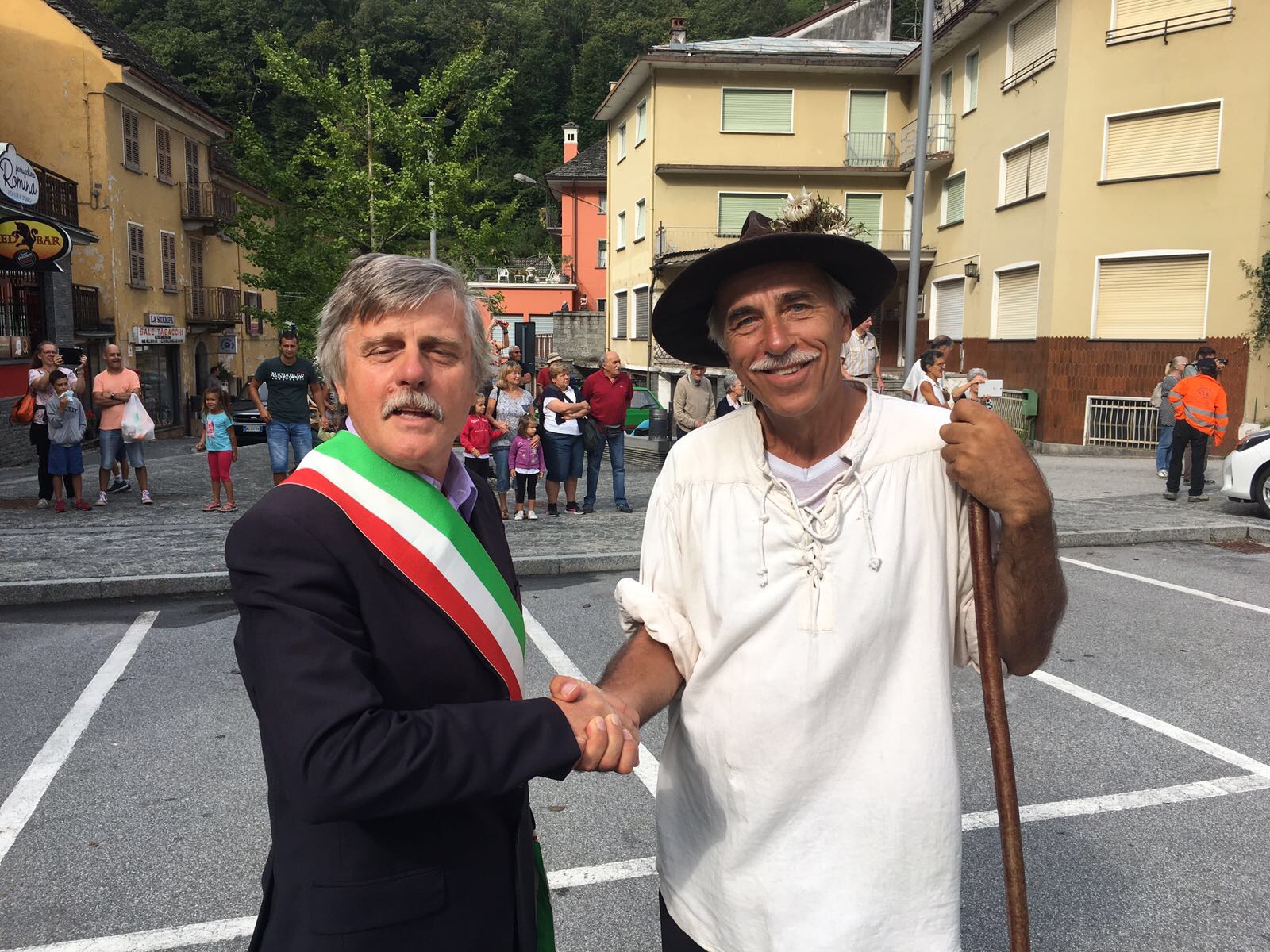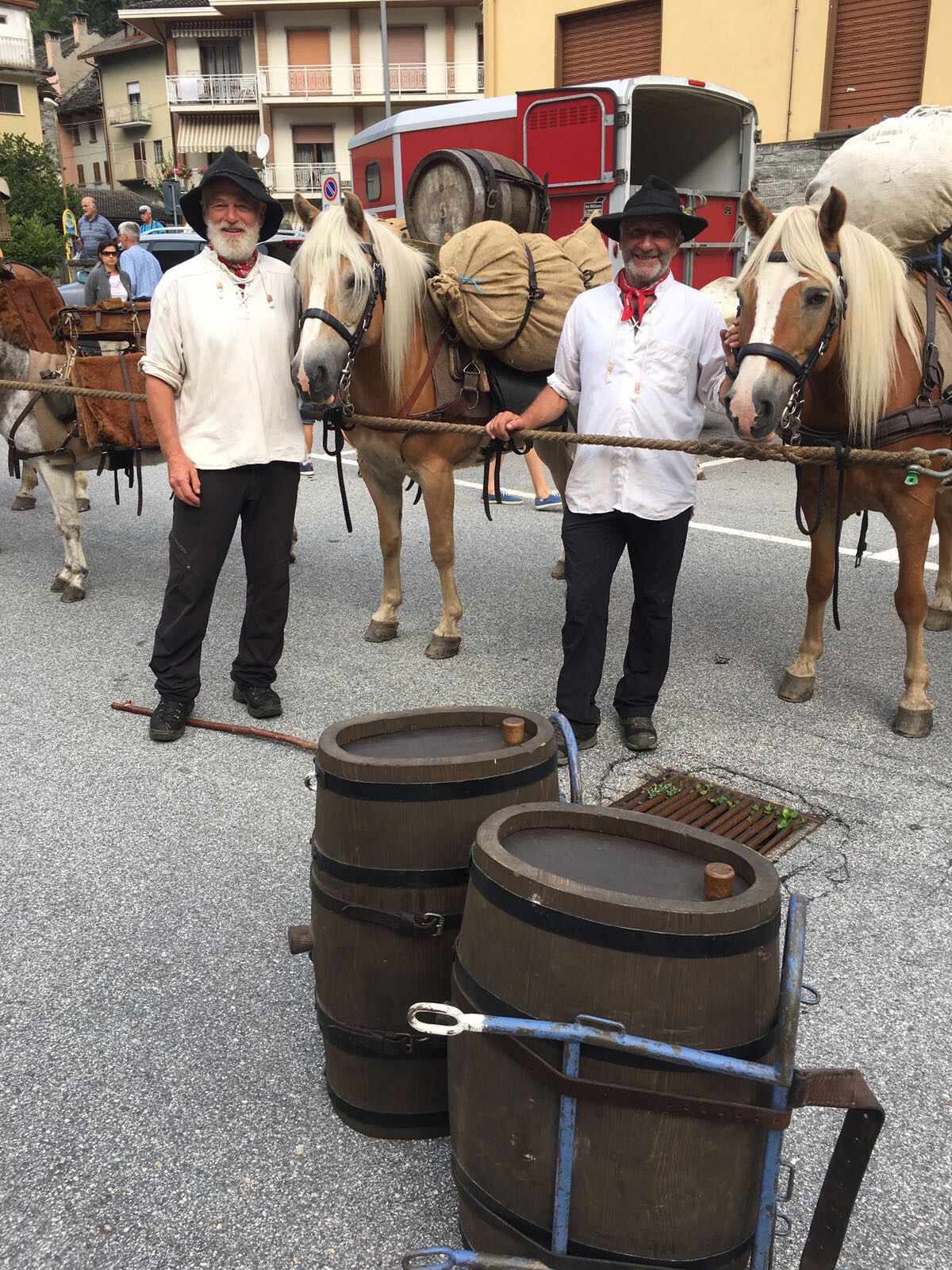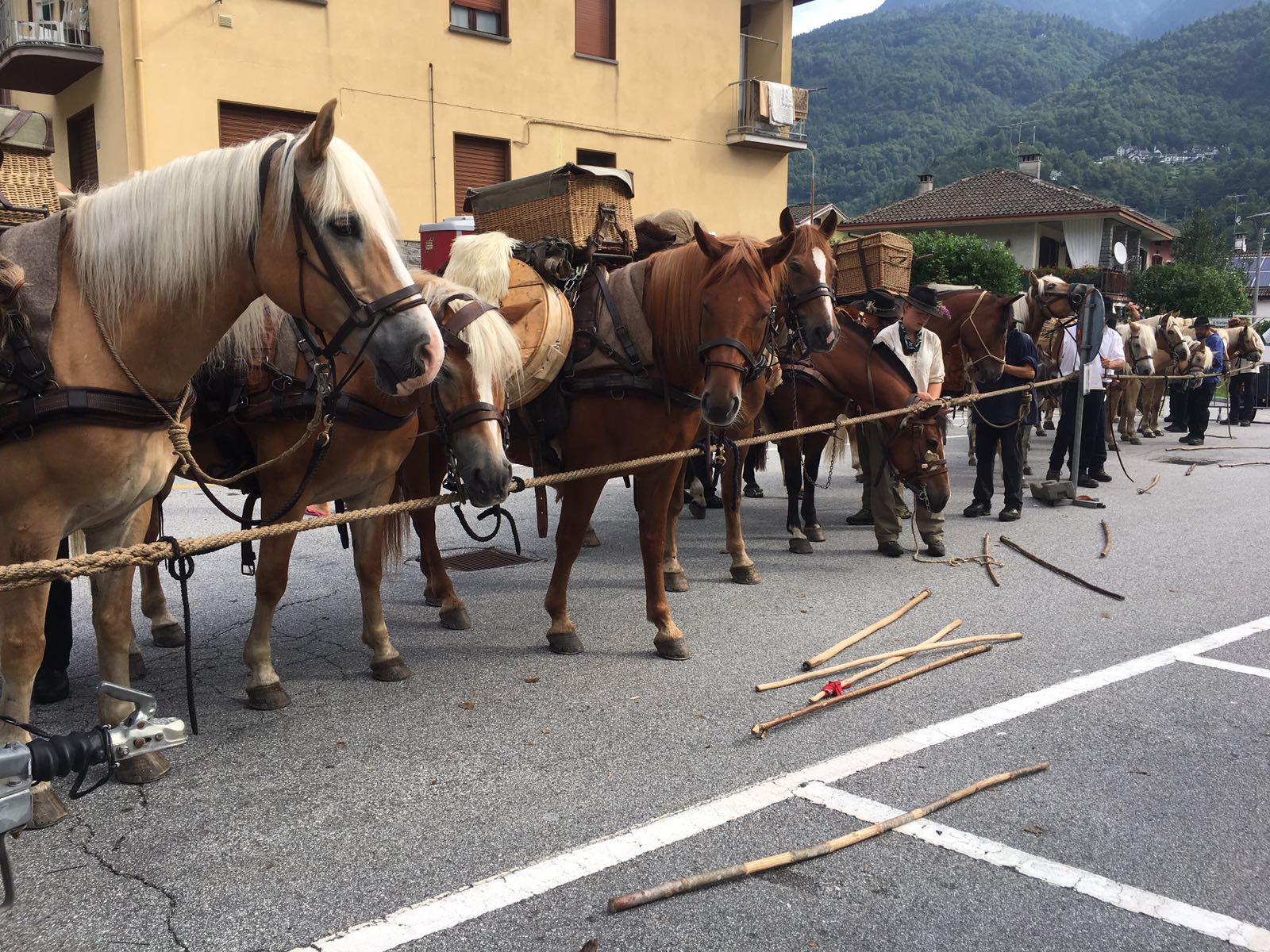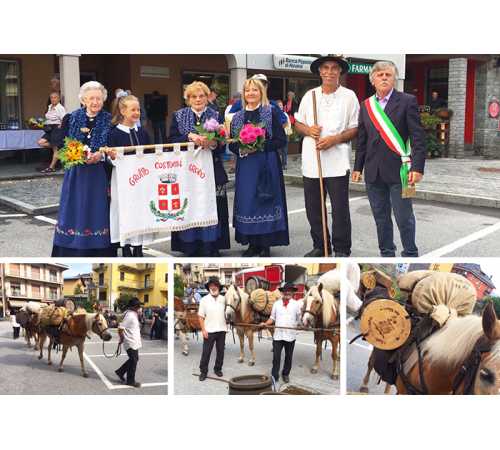 CRODO- 26-07-2017- Accolti da amministrazione e gruppi folk i someggiatori della Sbrintz Route stamane erano a Crodo. In giornata scenderanno verso valel passando da Montecrestese e Crevola sino a piazza Mercato a Domo, intorno alle ore 18. Per l'occasione l’ingresso di via Briona sarà addobbato con bandiere italiane e svizzere. La carovana è partita domenica scorsa da Stansstadt, nel Cantone Nidvaldo.