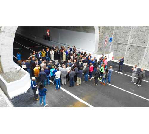 Le parole di benedizione di Don Midali precedono il taglio del nastro ad opera delle autorità: sono presenti il sindaco di Macugnaga Stefano Corsi, il sindaco di Vanzone San Carlo Claudio Sonzogni, il sindaco di Calasca Castiglione Silvia Tipaldi, il sindaco di Pieve Vergonte Maria Grazia Medali e l’on. Enrico Borghi. Come da tradizione, la galleria viene percorsa da tutti gli intervenuti in una fresca passeggiata; alle ore 13,00 è aperto il traffico veicolare.