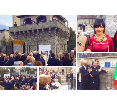 per vivere il suo nuovo ruolo ed è necessario che tutti si adoperino per farla diventare un'opera viva del tessuto culturale e storico della città. Scuole associazioni privati cittadini possono e devono fruirne per lezioni di storia, cerimonie, spettacoli, visite turistiche, ma anche eventi privati”. Così si è espresso questa sera il presidente del Lions Davide Vecchietti alla cerimonia di consegna della torretta medievale restaurata alla cittadinanza. Il simbolo di Domodossola oltre ad essere stato messo in sicurezza acquista anche una nuova veste funzionale grazie alla creazione dell'annessa cavea che può ospitare fino a 150 persone. Proprio sui gradoni della cavea erano seduti gli invitati all'evento. Il progetto è stato curato dal Lions club. “E' una grande soddisfazione – ha continuato Vecchietti - è stato un intervento importante per diversi motivi. Uno sicuramente affettivo la torretta rappresenta da sempre il simbolo di Domodossola inoltre con la creazione della cavea acquista un nuovo ruolo dove cittadini e associazioni enti e scuole possono svolgere attività ricreative e culturali, un luogo di incontri di spettacolo e di arte”. E' stata creata una commissione apposita, composta da Lions e da professionisti esterni e dal socio fondatore del Lions Gianluigi Caretti. Caretti emozionato, nel suo intervento ha ripercorso le varie tappe del lavoro di restauro. Alla cerimonia sono intervenuti il sindaco di Domodossola Lucio Pizzi e gli assessori alla Cultura e ai lavori pubblici Daniele Folino e Franco Falciola e i del Lions club . “Il tutto è nato – ha spiegato Davide Vecchietti- dalla felice intuizione dei soci Gian Luigi Caretti e Gian Paolo Prola”. . Un ringraziamento è andato anche Ken Marquardt dell'associazione Canova per il contributo e per la presentazione del progetto in America a Thomson Dellor che ha finanziato la realizzazione della cavea . Per l'inaugurazione non era presente il benefattore Dellor che ha però mandato un messaggio. E' stato presentato anche il dipinto creato per l'occasione dall'artista Giuliano Crivelli che raffigura la torretta attorniata da personaggi celebri legati a Domodossola. “ Grazie senza l'aiuto del Lions l'amministrazione pubblica non sarebbe riuscita, a causa delle risorse limitate – ha detto il sindaco Pizzi - a realizzare l'intervento, grazie alla generosità di questi mecenati”. Pizzi ha ringraziato inoltre la famiglia Moalli che nel 1981 donò la torretta al Comune . Vecchietti ha ringraziato i benefattori Mister Thomson Dellor la fondazione del Vco e rappresentata dal presidente Maurizio De Paoli, la fondazione Ruminellli con il presidente Antonio Pagani e i soci lions e privati che hanno fatto donazioni. Al termine sono state scoperte le targhe intitolate ai benefattori ed è seguito un concerto del Domus Brass Quartet.