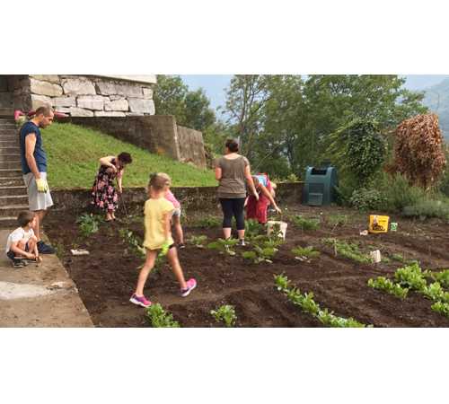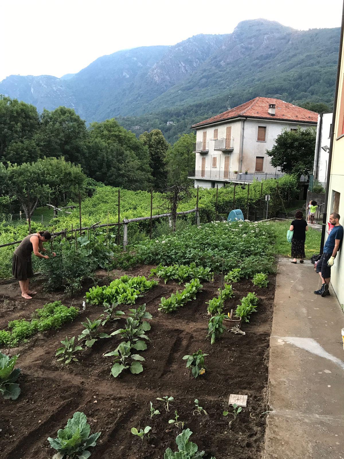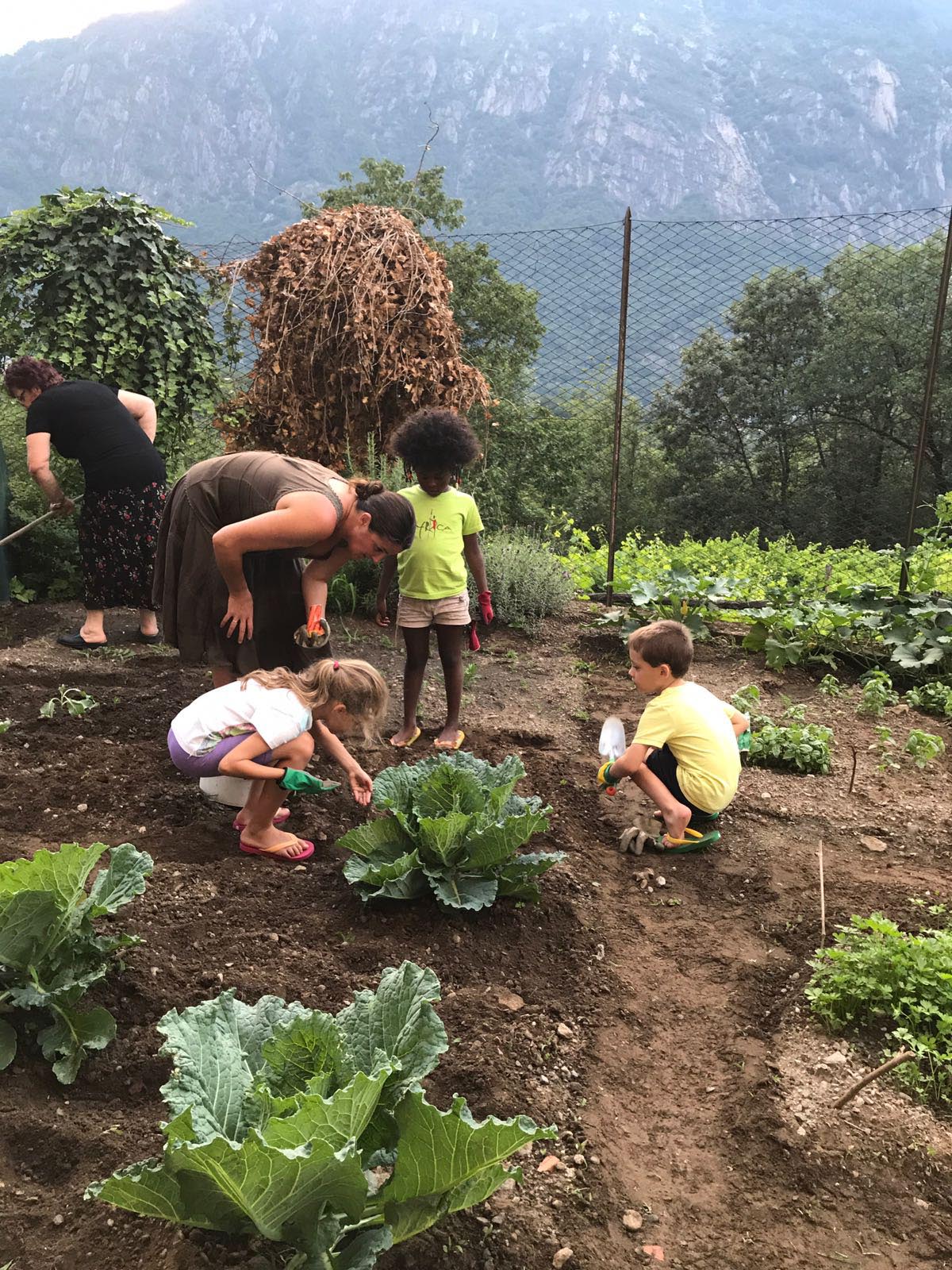 attrezzi, dando indicazioni colturali utili, curando campo e prodotti nell'arco dell'estate, preparando la cena con i prodotti dell'orto. La