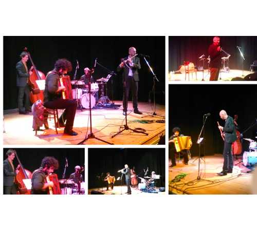 DOMODOSSOLA- 22-10-2017- La musica jazz di scena, nella serata di sabato 21 ottobre, al teatro Galletti di Domodossola, per “ Autunno in Jazz” con un inedito quartetto, il Gori Gervasi Quartet, formato dal flautista Michele Gori, da Roberto Gervasi alla fisarmonica, da Nicola Stranieri alla batteria e da Roberto Piccolo al contrabbasso. Un successo lo spettacolo musicale organizzato per l’ottavo anno consecutivo dalla Soms di Domodossola, ( del quale lo stesso Gori è socio) in collaborazione con il negozio bio GialloVerde, che ha appassionato il folto pubblico presente in sala con l’insolita combinazione di due strumenti suonati insieme, il flauto con la fisarmonica. Vincitore alcuni anni fa del premio come miglior flautista jazz italiano, l’ossolano Michele Gori in un viaggio di lavoro a Palermo ha conosciuto il ventisettenne già affermato fisarmonicista siciliano Roberto Gervasi e l’ha condotto per alcuni giorni a Domodossola nell’ambito di una collaborazione artistica. Gervasi, partirà a breve per New York per una serie di concerti che lo vedranno impegnato per alcuni mesi. Intanto il pubblico domese ha potuto apprezzarne il talento, deliziandosi dei brani jazz proposti dal sodalizio. Soddisfatto anche il presidente della Soms domese , Riccardo Vespa che ha colto l’occasione per invitare tutti ad iscriversi alla società solidaristica.