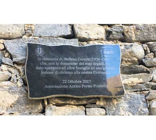 MONTECRESTESE-23-10-2017- Con lo scoprimento di una lapide a ricordo del gesto significativo compiuto con la donazione degli organi di Stefano Cerutti è iniziata domenica pomeriggio la castagnata al Pontetto di Montecrestese organizzata dall’Associazione Amici del forno.
