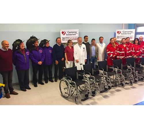 DOMODOSSOLA- 23-11-2017- Sono state consegnate con una breve cerimonia alla presenza del sindaco domese Lucio Pizzi, dei responsabili dell'Asl e dei direttori delle Società riceventi le sei carrozzine donate al reparte emergenze ed accettazioni dell’Associazione Il Cantante della solidarietà Onlus di Salvatore Ranieri: "Ancora una volta questo territorio dimostra una grande solidarietà- ha spiegato Massimo Nobili per l'Asl- per noi è importante e dimostra il legame con il territorio". "Ringrazio tutti quelli che mi hanno aiutato in questo progetto- ha spiegato Salvatore Ranieri, che sinora ha donato 25 carrizzine- arriveremo a 32 donando le prossime alle case di riposo".