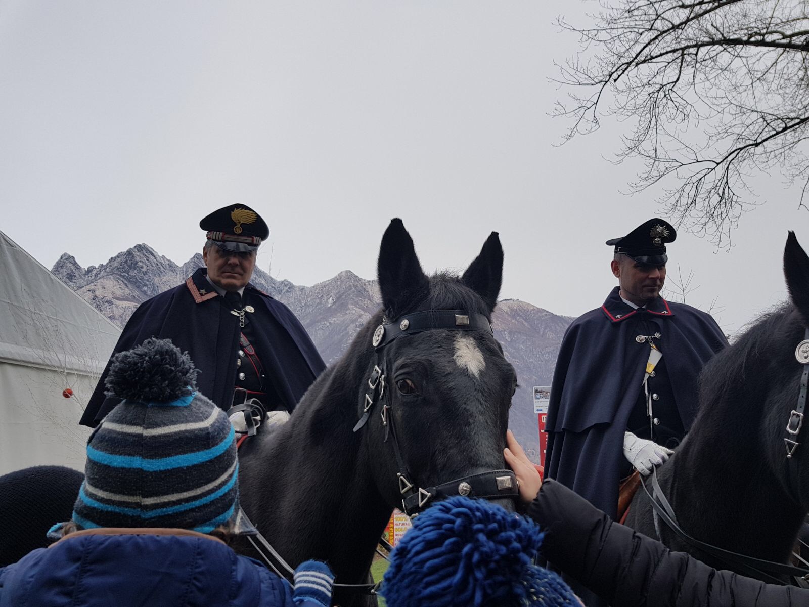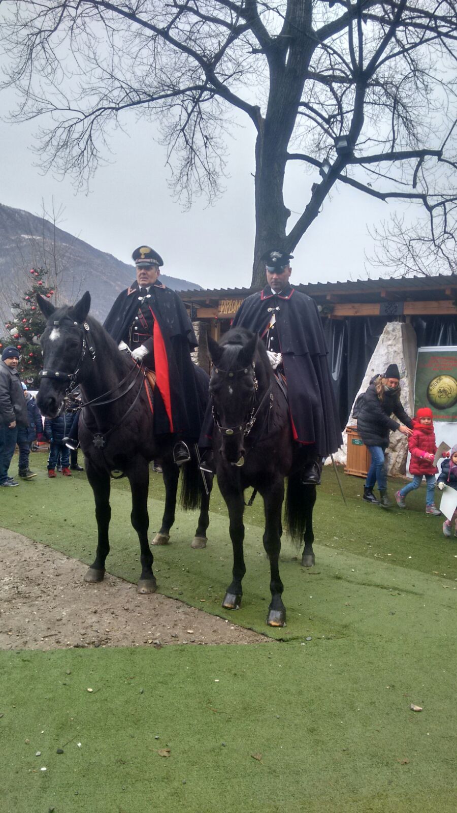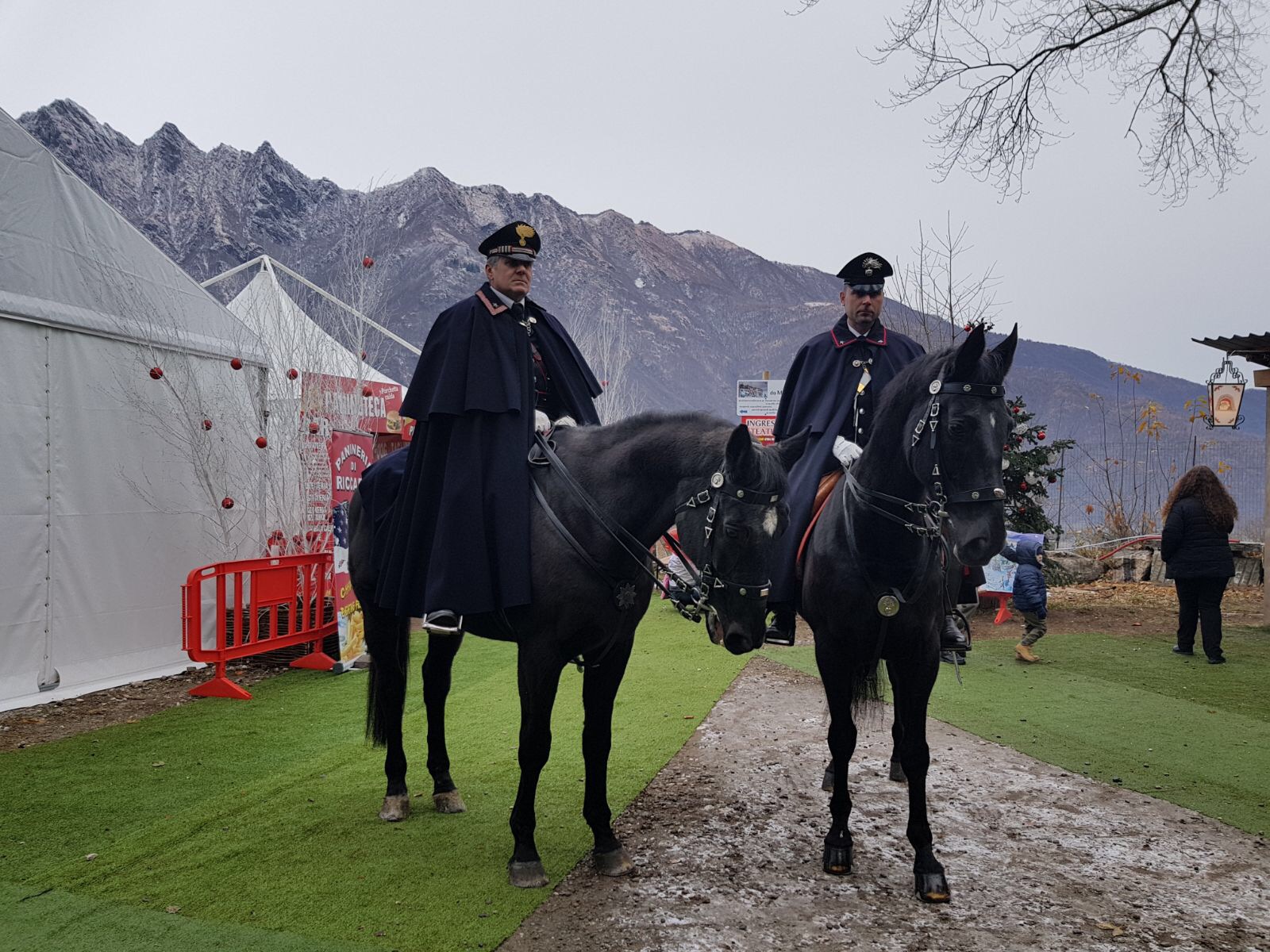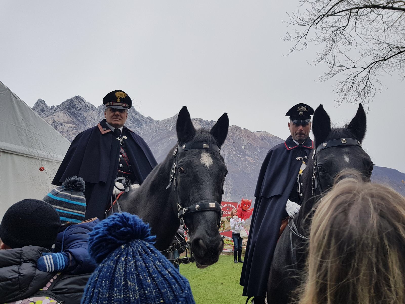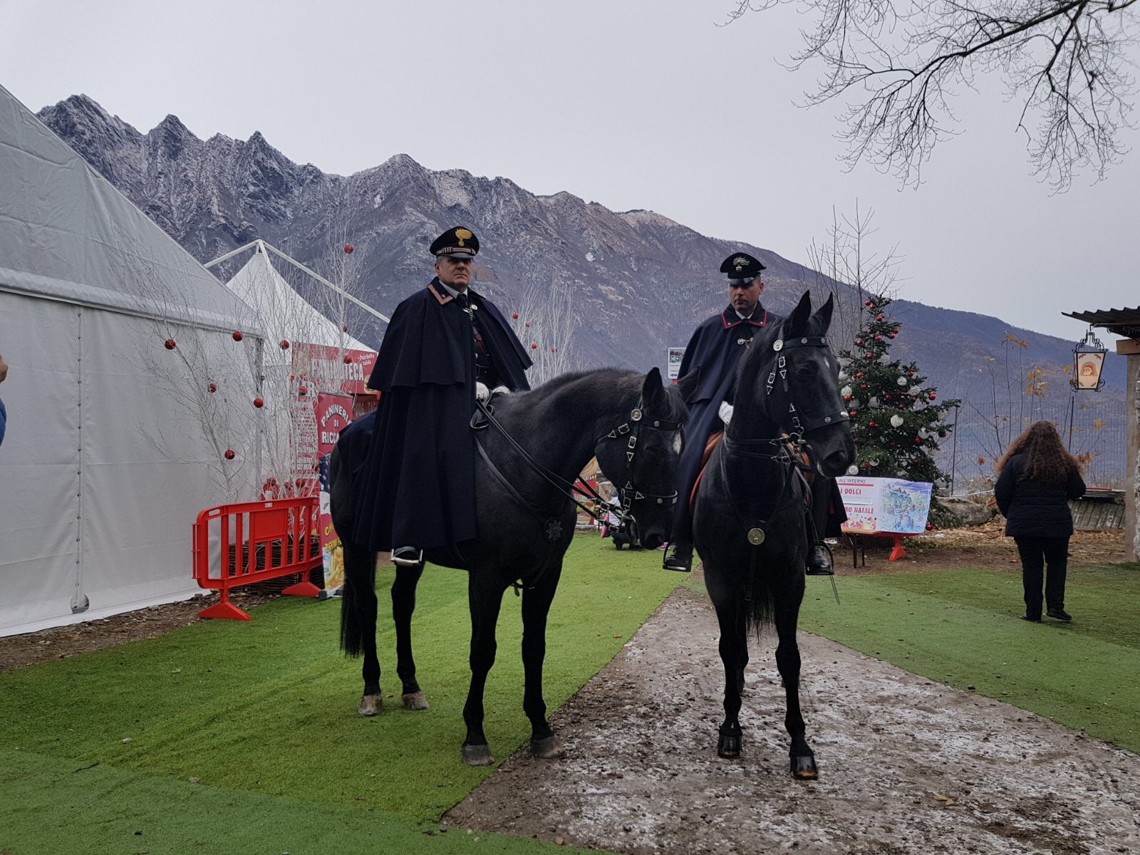 ORNAVASSO- 03-12-2017- Sono partiti domenica sera i carabinieri a cavallo che in questo fine settimana, dal venerdì alla domenica, hanno sfilato alla grotta di Babbo Natale di Ornavasso. L’evento, giunto ormai all’ottava edizione, sta avendo sempre più successo e quest’anno ha invitato pure una rappresentanza del 4° reggimento carabinieri a cavallo che è arrivata da Monza: “Nelle tre giornate- spiegano dall'Arma- i carabinieri sono stati in mezzo al pubblico riscuotendo un enorme successo tra adulti e soprattutto bambini, che non appena avvistati sono accorsi numerosi ad accarezzare i cavalli e a farsi foto in mezzo alla pattuglia. I due carabinieri hanno sfilato per le vie della manifestazione e sabato sono addirittura entrati nella grotta tra lo stupore e meraviglia dei bambini. E' la prima volta che l’Arma a cavallo partecipa a questa manifestazione e, anche se solo per tre giorni, ha apportato una novità che rimarrà sicuramente impressa nei ricordi di adulti e bambini che hanno avuto l’occasione di conoscerli”.
