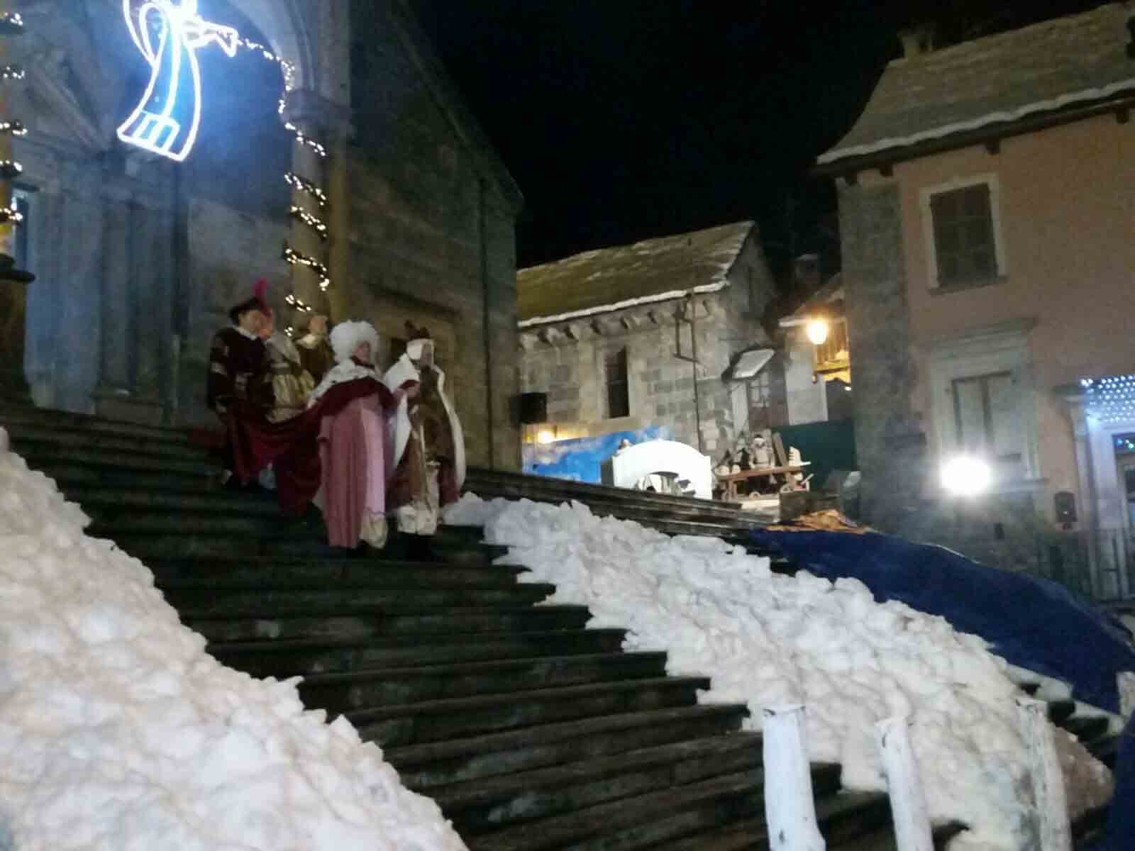VARZO-20-12-2017 – Martedì sera a Varzo è andato in scena per le vie del paese il presepe Meccanico, animato dal gruppo teatrale Varzese che ha trasformato il centro storico in una piccola Venezia avvolta nella magia del Natale.