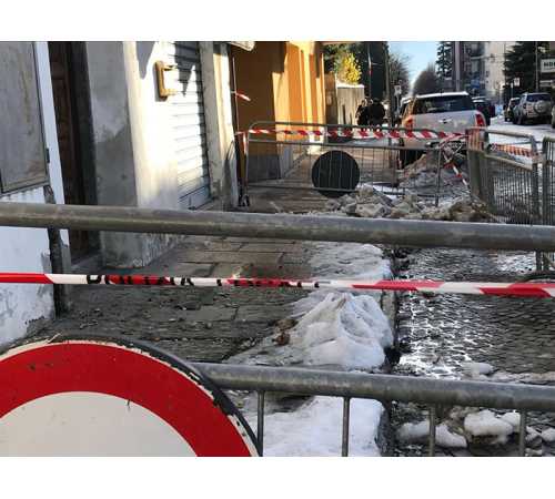 si è distaccata dal tetto di una casa di via Galletti ed è caduta rovinosamente sul marciapiede. Fortunatamente in quel momento nessuno passava lì sotto. l'area è stata transennata.