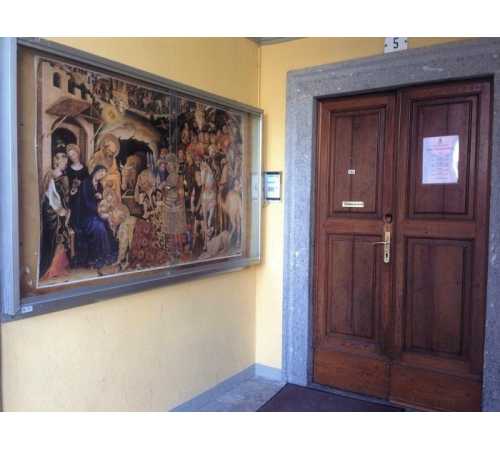 per il periodo delle feste c'è la stampa del dipinto “ L'Adorazione dei Magi” un'opera di Gentile da Fabriano a tempera e oro su tavola datato del 1423 conservato alla Galleria degli Uffizi di Firenze. L'idea dell'originale collocazione della stampa che misura due metri per uno è del sindaco Davide Carigi. “Si tratta della bacheca che ospitava il vecchio albo pretorio – dice il sindaco Carigi - che non viene più utilizzato, con l'avvento dell'albo pretorio on line e quindi ho pensato per Natale e Pasqua di adibirla ad annunci importanti per tutti i cristiani”.