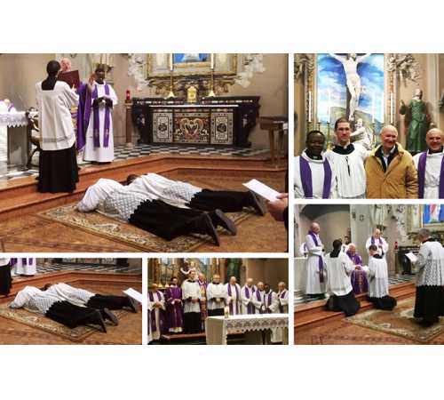 della festa della Cella, il 20 febbraio al Santuario del Santissimo Crocifisso si è svolto il rito della professione perpetua per due scolastici: Francesco Giacomin e Pedro Gomez. Si tratta dell'ultima tappa del cammino di formazione rosminiana, gli scolastici hanno emesso i voti perpetui di castità, povertà e obbedienza davanti al padre generale dei rosminiani don Vito Nardin, al padre provinciale Claudio Massimiliano Papa e al rettore del Sacro Monte Calvario don Pier Luigi Giroli. Il giovane Francesco Giacomin originario di Treviso ha trascorso il periodo di formazione al Sacro Monte Calvario, mentre invece Pedro Gomez spagnolo ha svolto il periodo di studi a Rovereto. Francesco Giacomin ha 28 anni si trova al Sacro Monte Calvario dal 2010. E' arrivato a Domodossola dopo aver studiato per 8 anni pianoforte al conservatorio di Venezia e aver frequentato il Liceo scientifico. “Mi interessava la vita religiosa comunitaria -spiega Giacomin- ispirata alla fede e alla ragione. Tema che non ho trovato in altri ordini religiosi, più vicini alla mia città. A 19 anni Giacomin giunse a Stresa per conoscere meglio il Centro Studi rosminiani e il direttore Padre Umberto Muratore lo indirizzò al Sacro Monte Calvario. Dopo due anni di noviziato andò a Roma per intraprendere gli studi filosofici. “Nel 2012 ho emesso i primi voti – dice - è proseguito il cammino di preparazione alla pofessione perpetua al Sacro Monte Calvario”. Ora proseguirà a Roma gli studi teologici. “La provvidenza mi mostrerà il cammino se la via sacerdotale, la missione – dice - o se proseguire come coadiutore e studioso del pensiero di Rosmini”. La festa della cella, per l'anniversario dell'arrivo del Beato Rosmini il 1828, prosegue sabato 24 febbraio a Domodossola arriverà l'arcivescovo emerito di Torino, il cardinale Severino Poletto. Alle 18 nella chiesa Collegiata presiederà la santa messa.